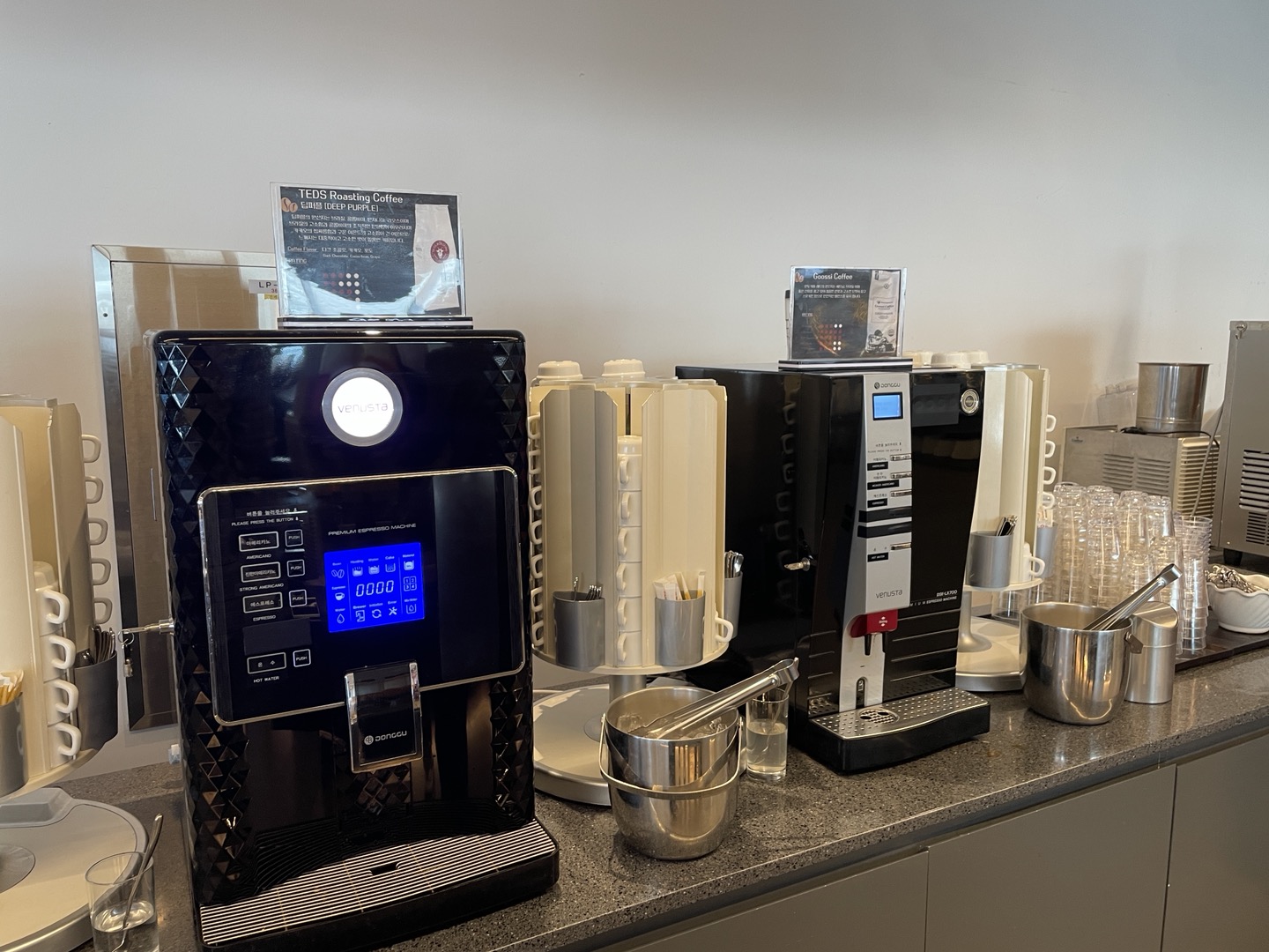 우유의 바로 맞은편에 있어 에스프레소를 내리고 바로 라테를 만들어 먹을 수 있습니다.