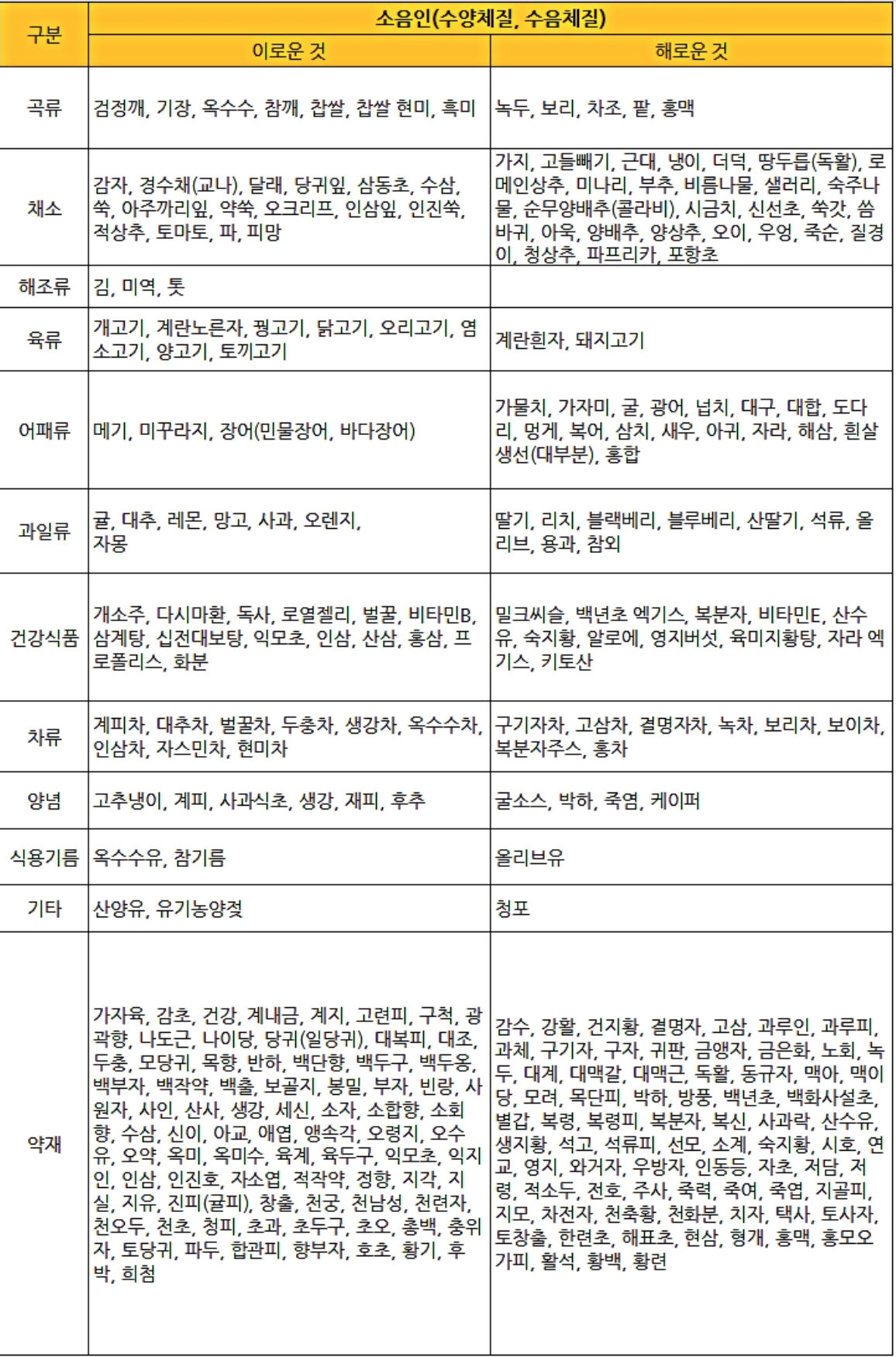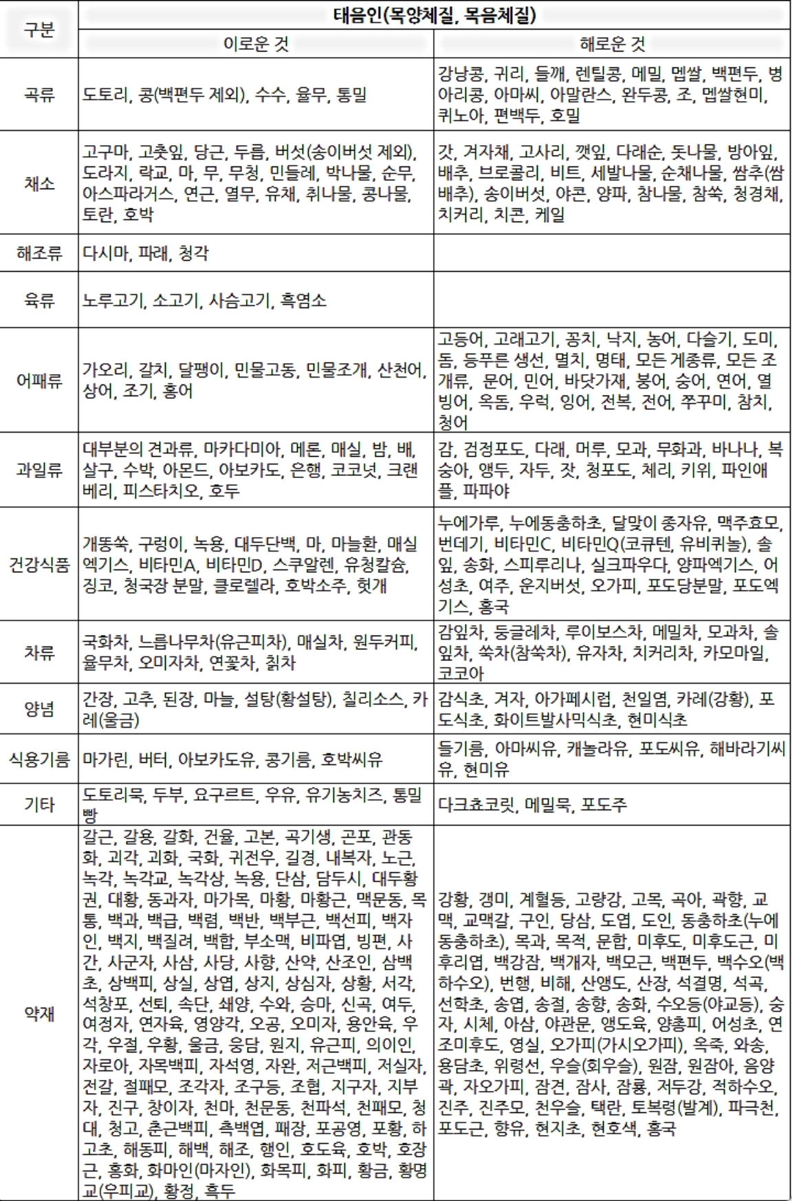8체질 섭생표로 건강을 챙기자